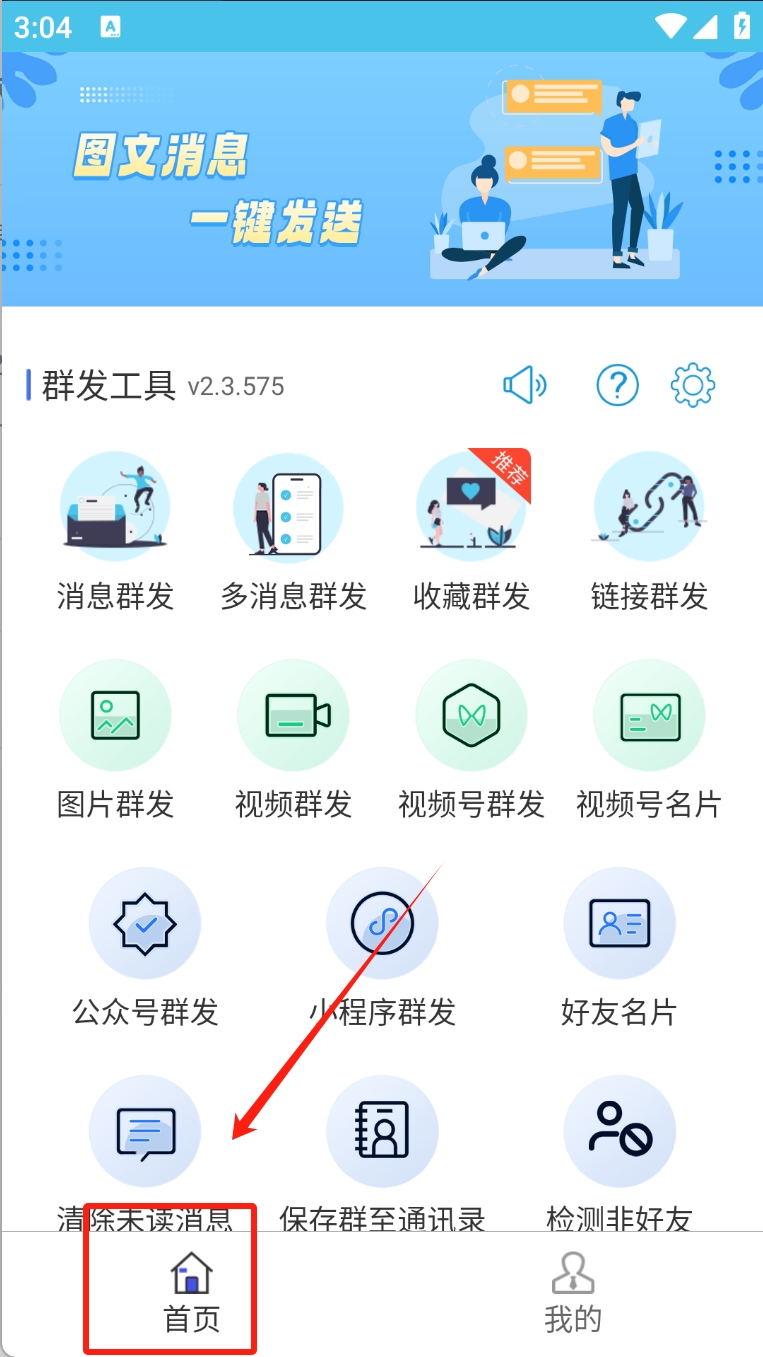 2、接着,点击“首页”按钮进入应用的主界面。