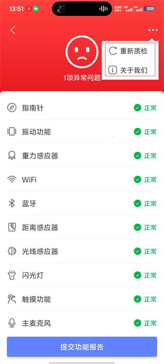 4、检测完成后,若出现异常问题,可点击【重新质检】再次检测,也能提交功能报告记录检测结果。
