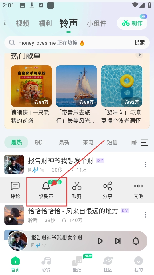 展开后有个【设铃声】的功能,能把喜欢的铃声设置成各种提示音,特别好用。