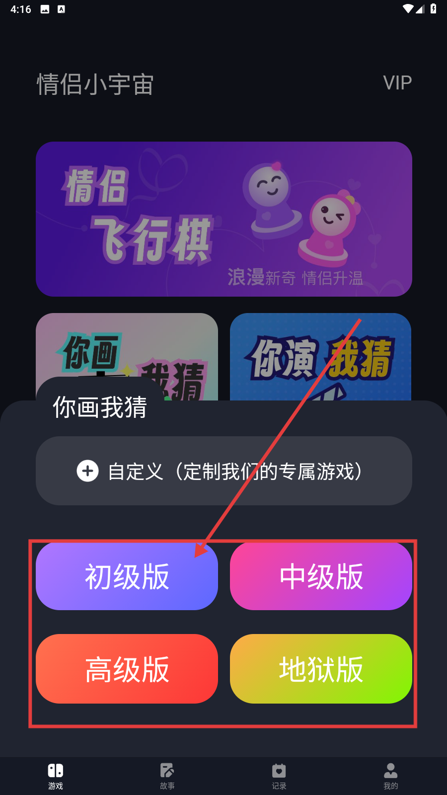 2、选择要玩的难度等级。