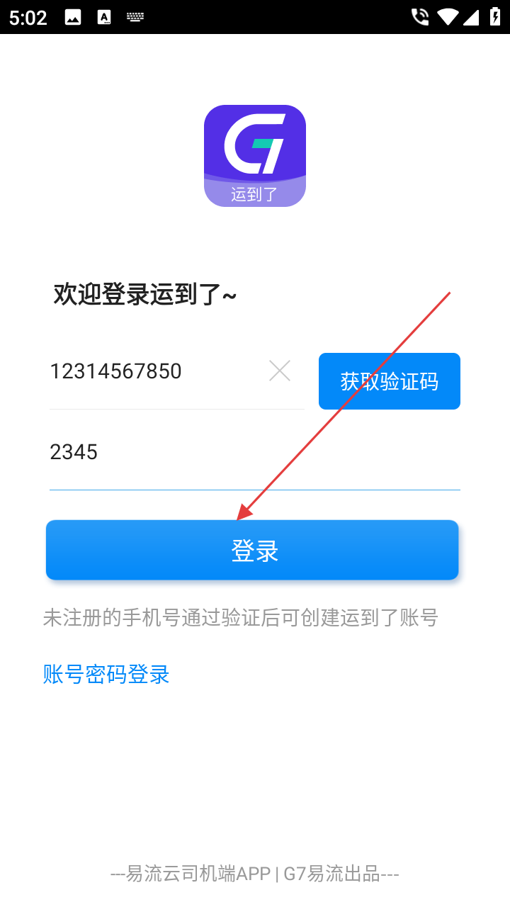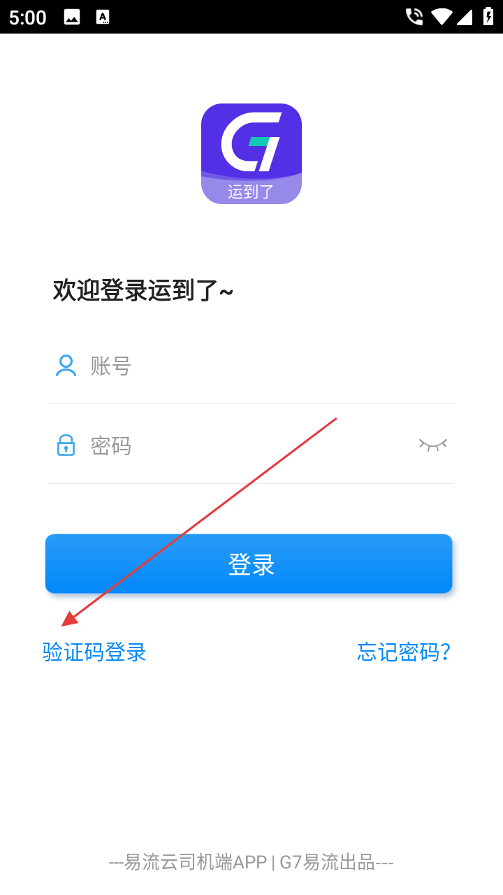 2、进入账号密码登录页可选【验证码登录】,切换便捷登录方式。