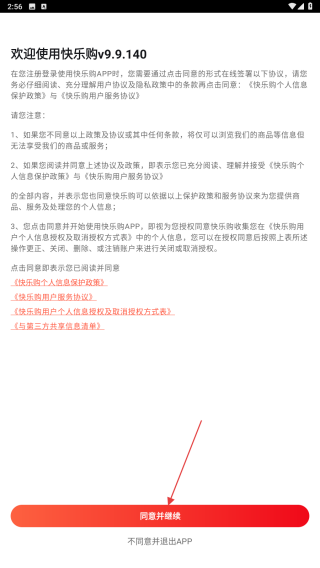 1、打开软件,在界面阅读相关协议后点击【同意并继续】按钮,进入应用主界面。