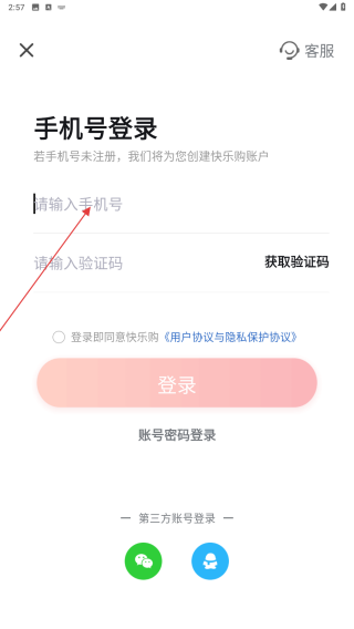 3、在【手机号登录】界面,输入手机号并获取验证码完成登录操作,也可选择第三方账号登录。
