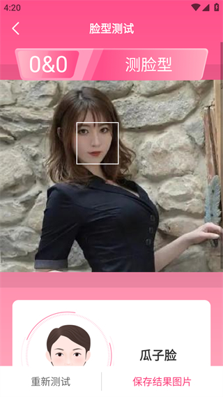 4、脸型测试功能,基于人工智能及大数据分析你的脸型,让你知道你的脸型有哪些特点。