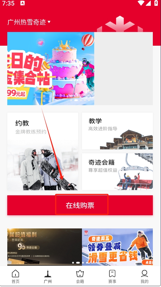 如何在热雪奇迹滑雪训练中心购买滑雪票