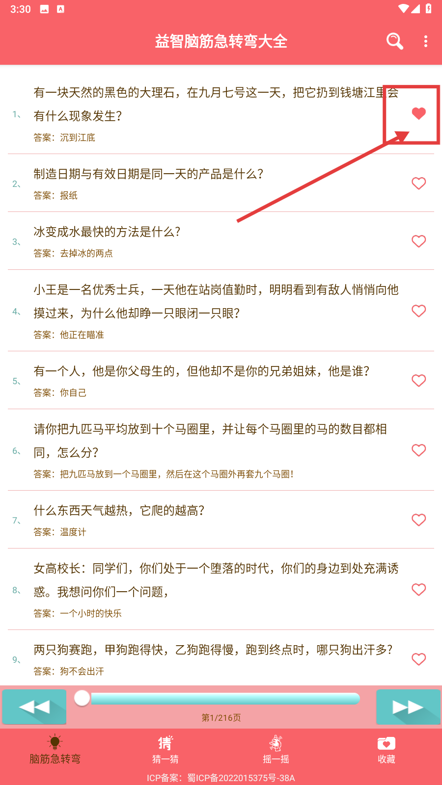 2、碰到感兴趣的题目可以点击右侧爱心图标进行收藏。