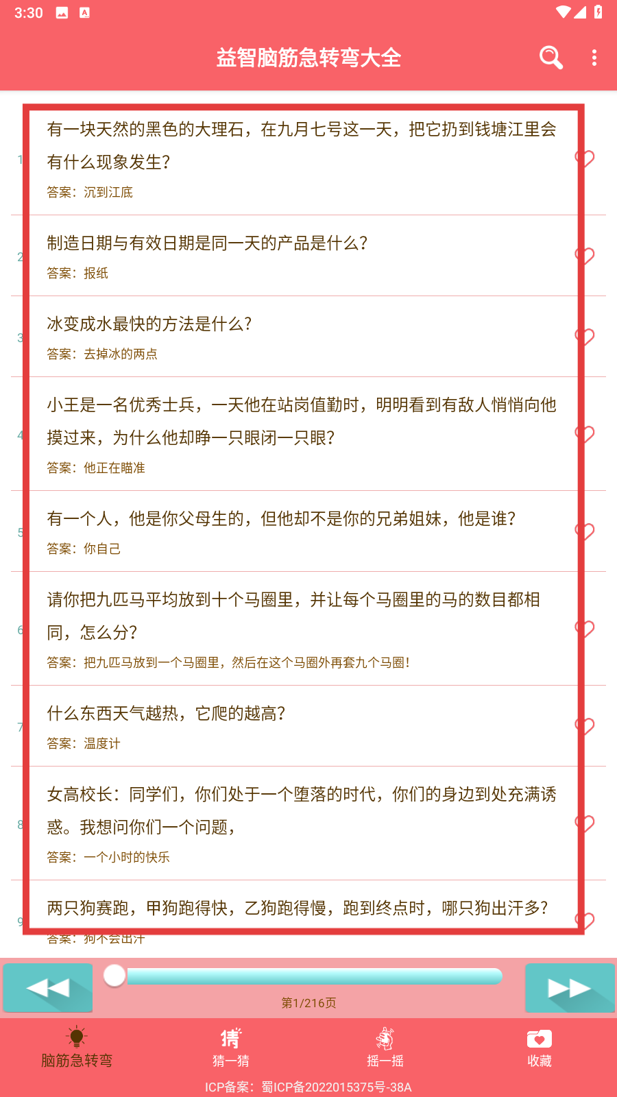 1、打开应用,在首页中有很多有意思的题目以及答案。