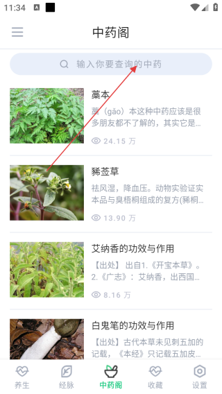 1、打开应用进入首页点击中药阁。
