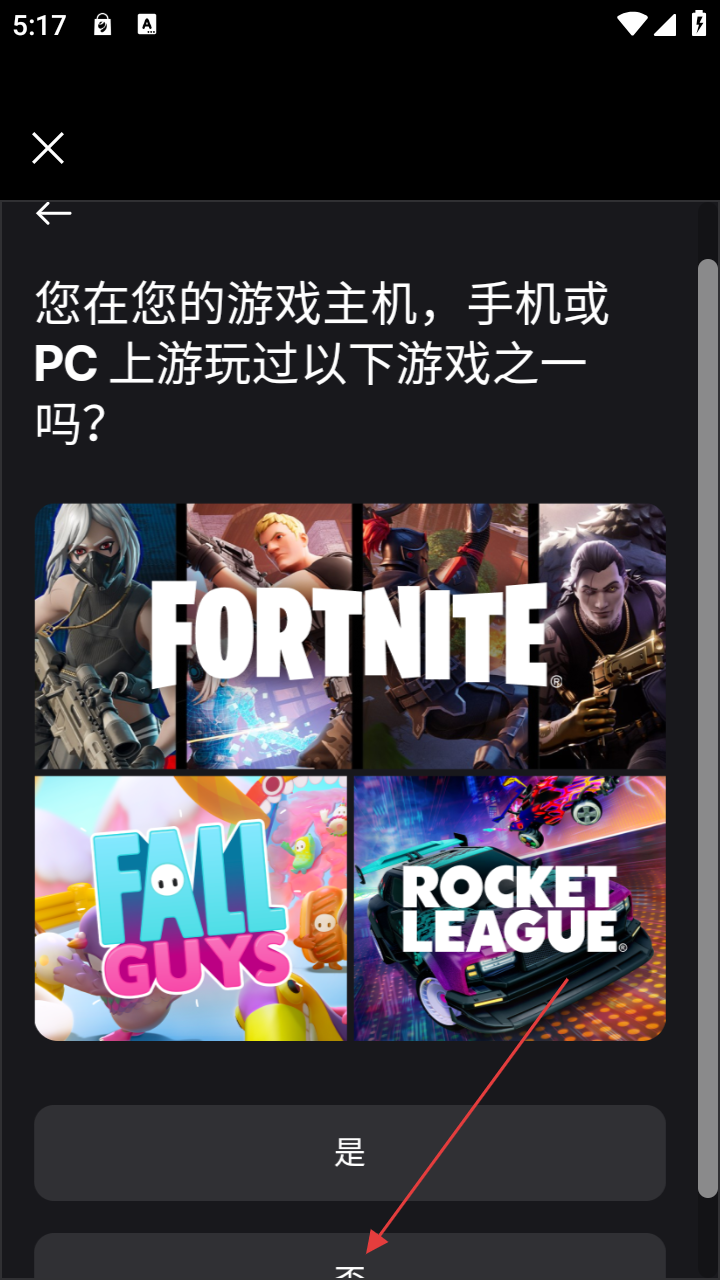 3、在游戏游玩经历询问界面,根据自身情况选择【否】。