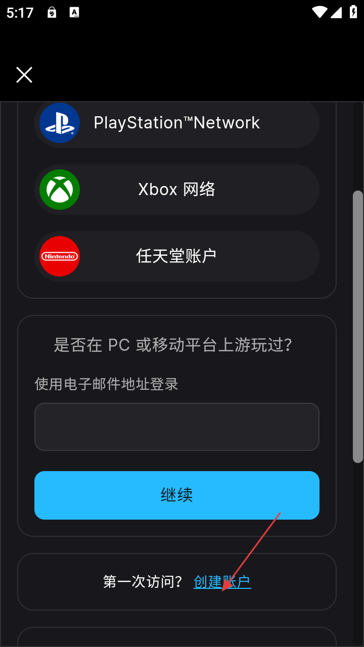 2、在账号界面,若为首次访问可点击【创建账户】。