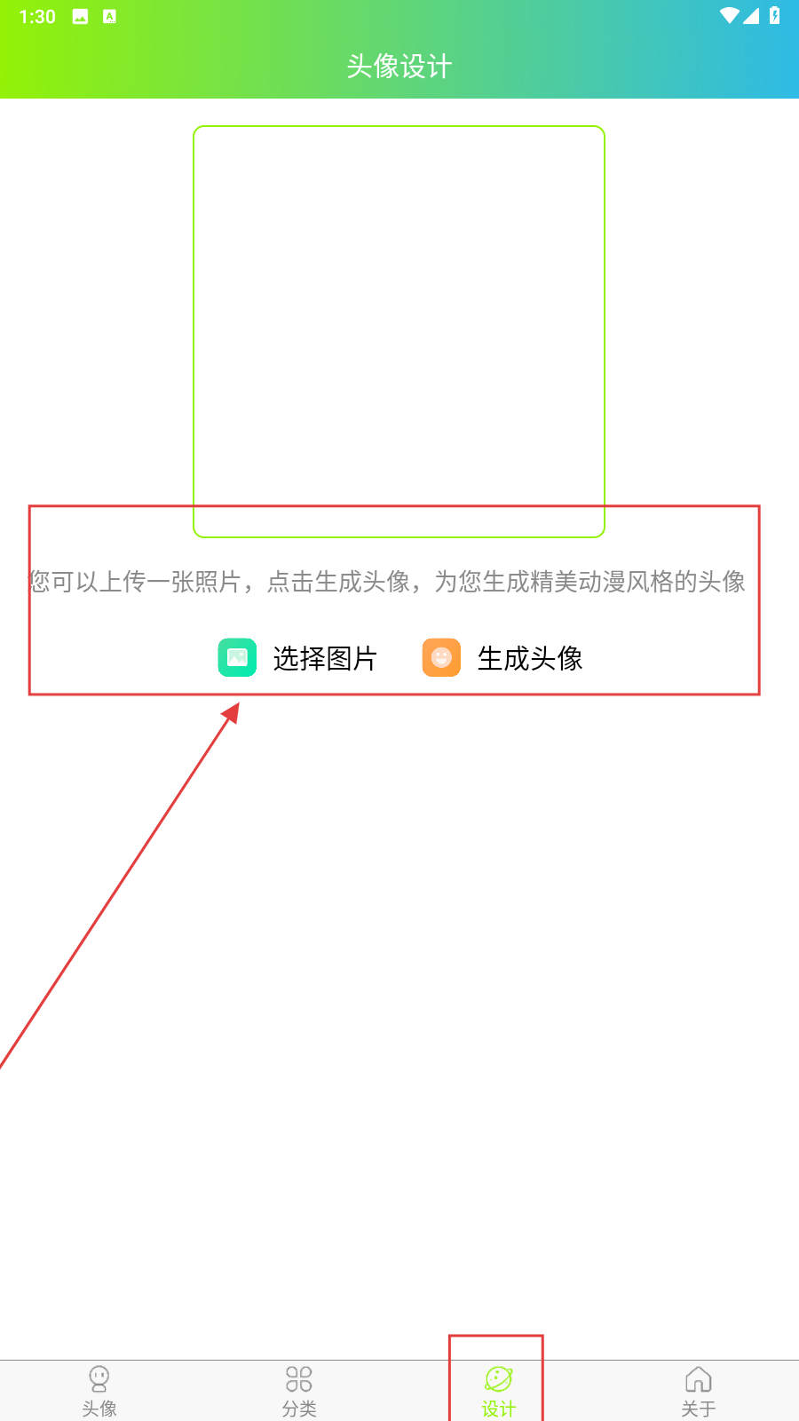 3、在【设计】界面还可以选择自己的照片生成漫画风头像。