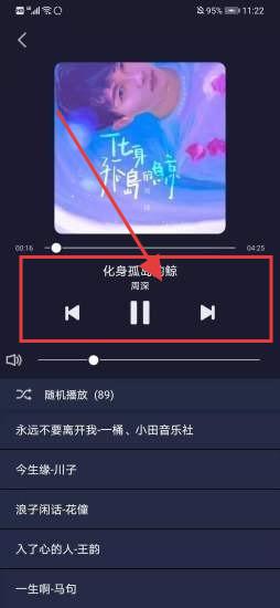 1、在【播放界面】,点击按钮实现播放/暂停,切换曲目,拖动进度条调进度,点击切换播放模式。