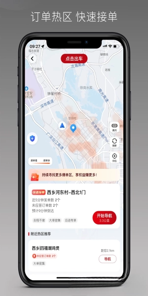 极简操作界面:界面针对驾驶场景进行了优化设计,订单、收入、导航等关键信息清晰直观,接单、导航、完单等核心操作都做到了一步直达,尽可能降低驾驶时分心的可能,为安全驾驶提供保障。
