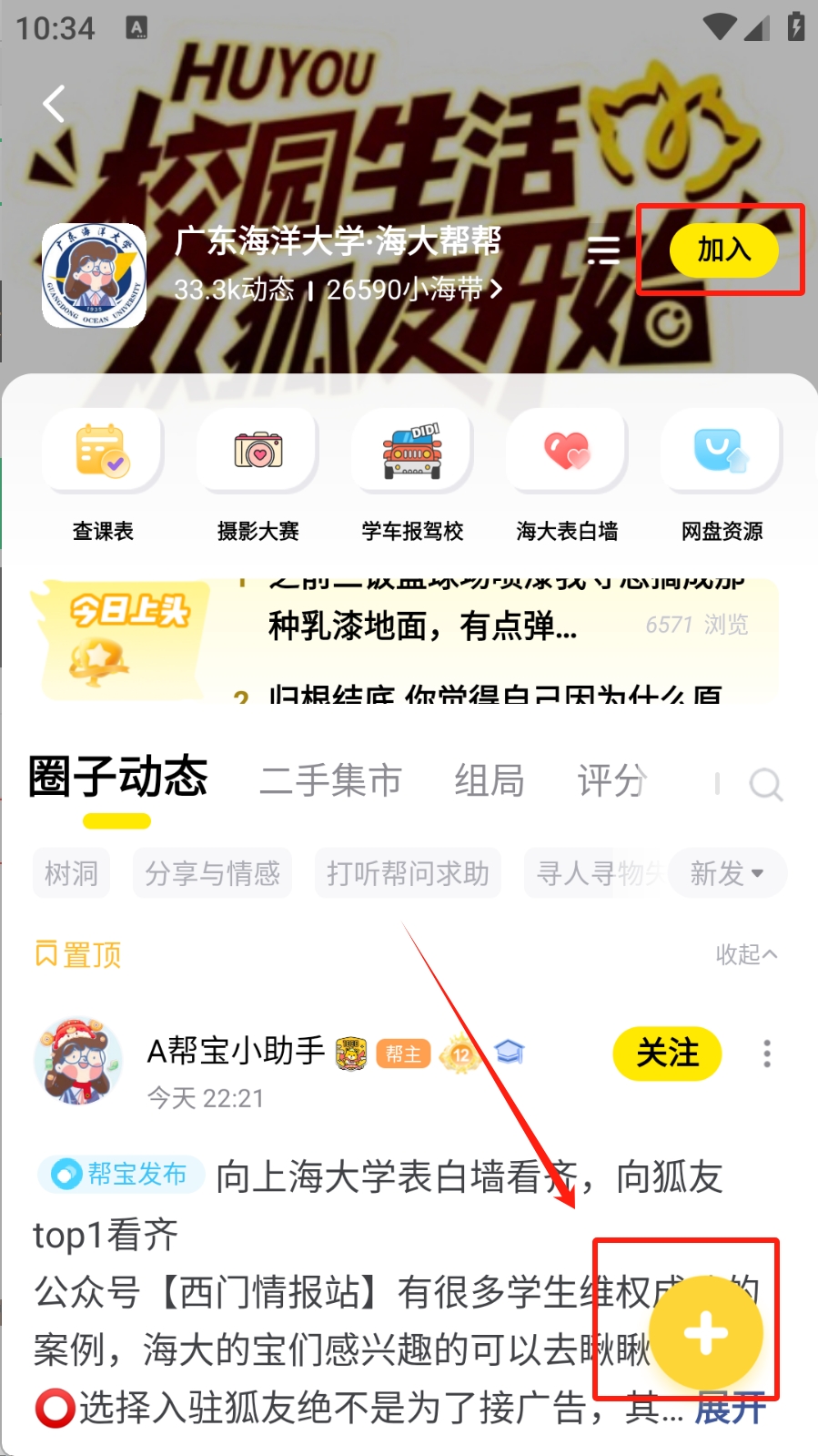 4、在圈子动态页面,点击“加入”按钮,加入感兴趣的圈子并参与讨论。