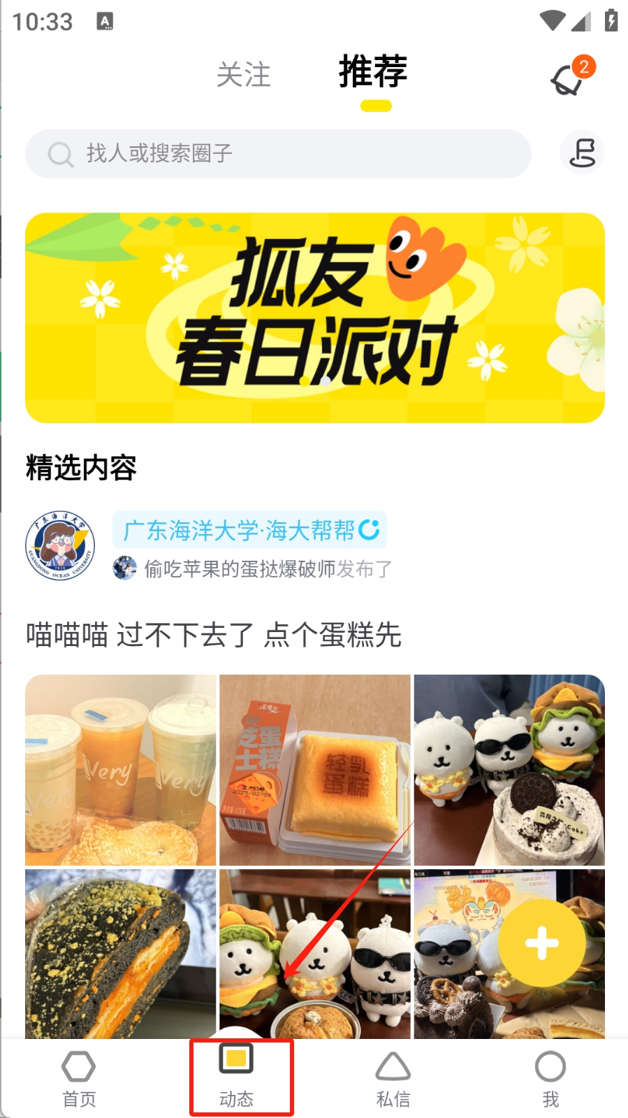 3、在动态页面,点击底部导航栏中的“动态”图标,浏览和发布动态。