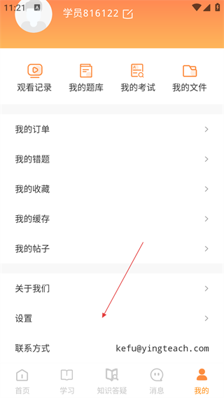 2、点击底部【我的】进入个人中心,选择【设置】选项,进入设置界面。