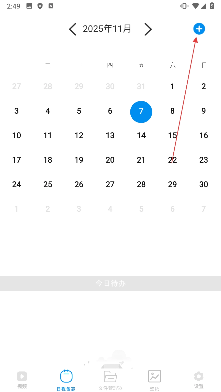 点击底部【日程备忘】,进入日历页面。