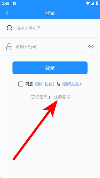 在登录页面,点击注册账号,进入注册页面。