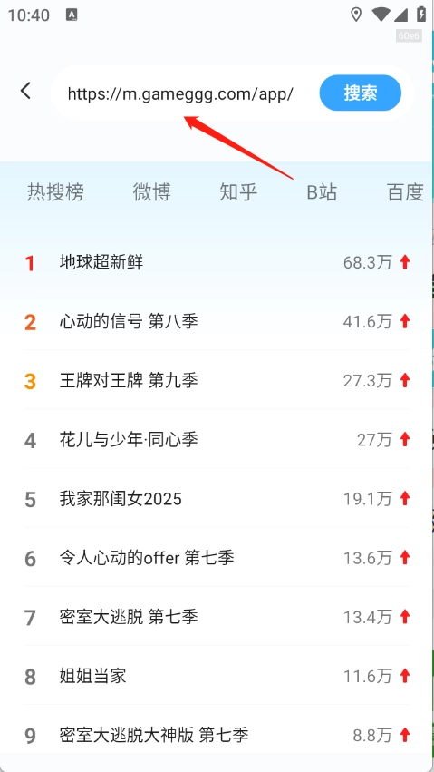 进入首页后,可在输入框内输入关键词或网址并点击搜索。