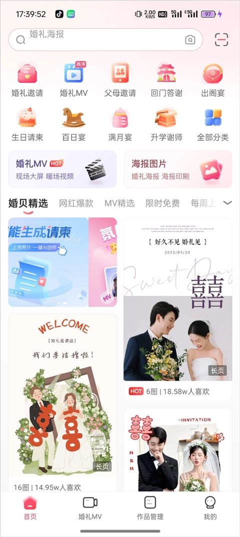 婚贝请柬App是一款为婚礼、满月、生日、聚会等场景量身打造的电子请柬制作工具。平台提供海量精美模板,覆盖中式、森系、卡通等多元风格,同时支持H5动态、长页请柬、海报等多种呈现形式。用户不仅可以自由添加图片、音乐、弹幕、祝福文字等个性化元素,还能一键转发至微信、朋友圈等社交平台,实现便捷传播。软件操作简单易上手,即使是新手也能快速完成制作,且成品自动云端存储,方便随时修改调整。凭借高颜值的模板资源与高自由度的编辑体验,婚贝请柬深受年轻群体青睐,成为人们打造专属请柬、传递幸福瞬间的优质选择。