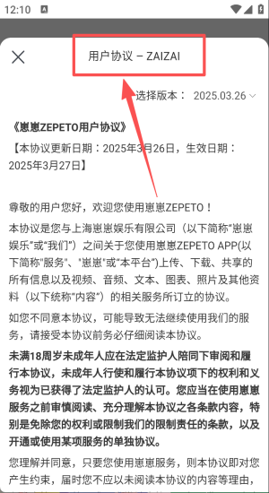 3、浏览2025.03.26版用户协议,确认条款后继续下一步操作流程。