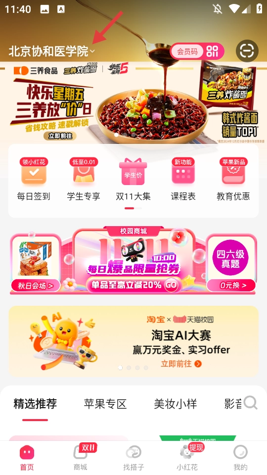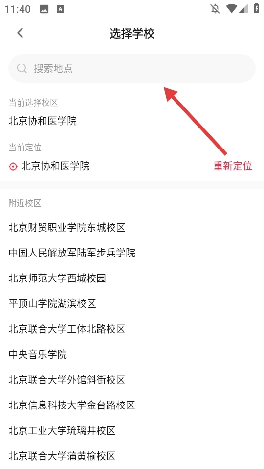 在首页,点击顶部的学校名称,即可进入【选择学校】页面。