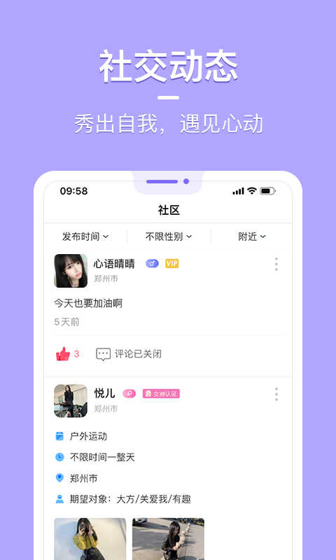 1分钟认识同城附近500米单身异性。知聊是一款同城附近陌陌生人,聊天、交友、恋爱,为同城附近陌生单身男女量身定做的聊天交友社交软件,让同城陌生人遇见交友不再是难题!24小时在线甜言蜜聊,视频互动,分享动态,探一探附近单身异性,聊聊人生,聆听心声,来一场有趣的灵魂恋爱之旅。