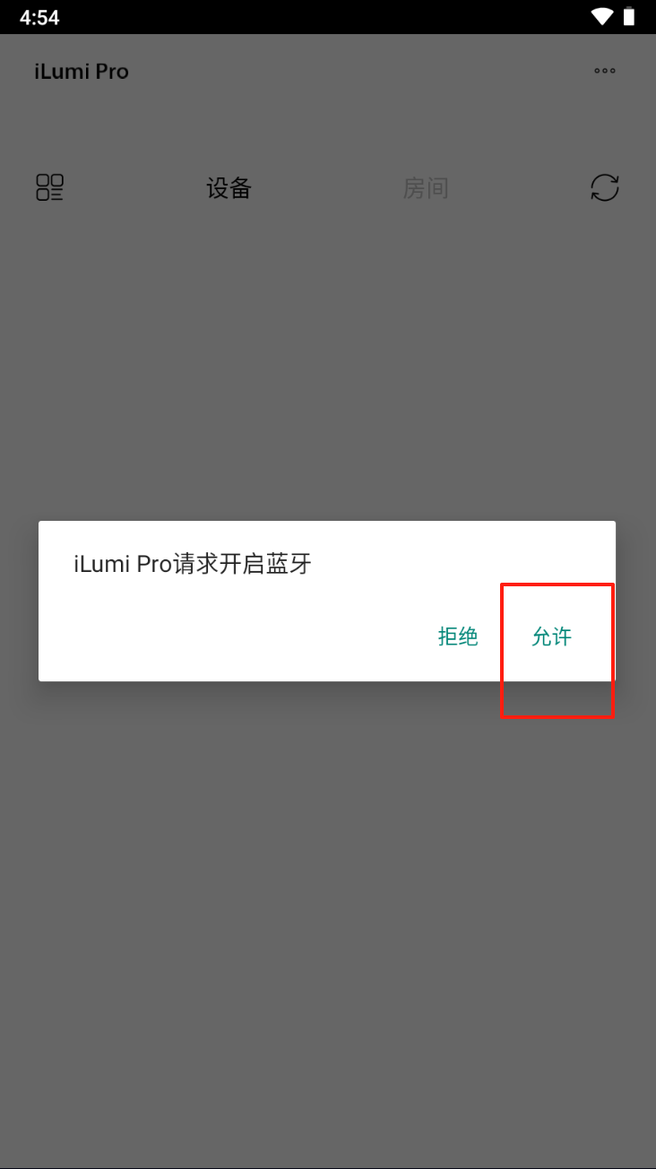 1、当iLumi Pro请求开启蓝牙时,点击“允许”以启用蓝牙功能。