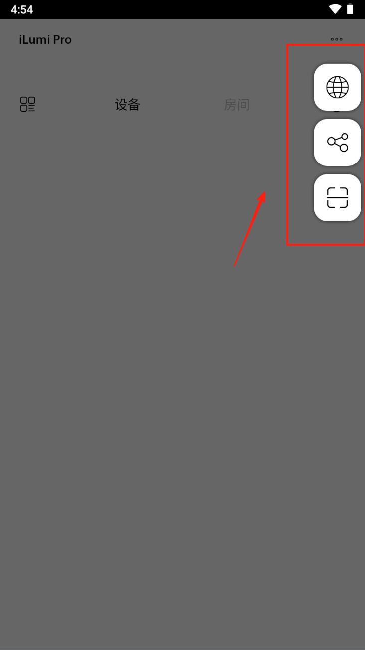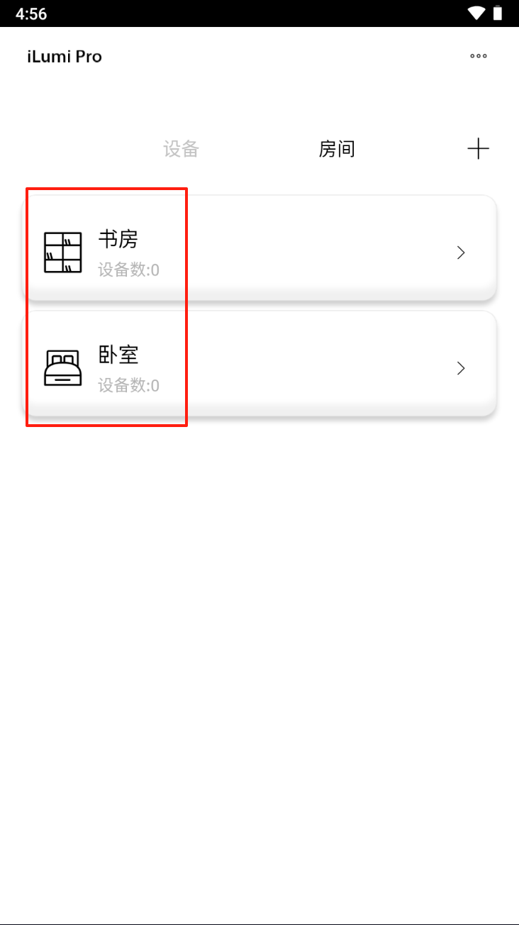 2、在主界面点击右上角的“+”号,进入设备或房间管理菜单。