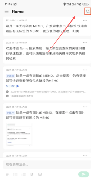 2、点击搜索栏输入关键词,空格分隔多词即可瞬间定位所需历史memo。