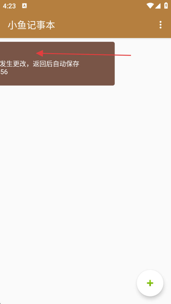 1、打开【小鱼记事本】,点击右下角【+】,创建新记事内容。