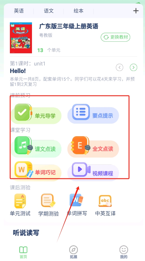 1、涵盖多种英语内容,包含课本,视频和绘本,满足不同年级学生的需求,让学习变得更加有趣且富有成效。