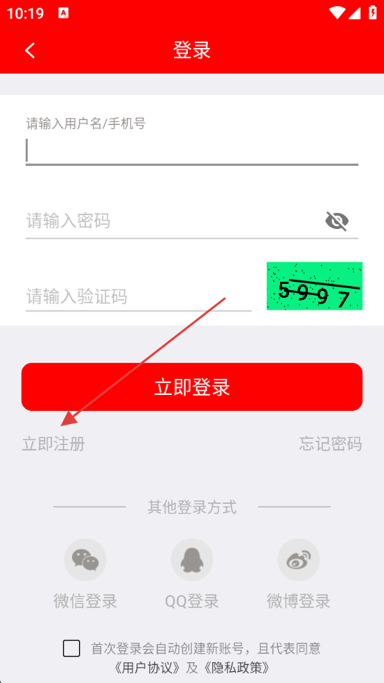 3、进入登录页选择【立即注册】,进入注册页面。
