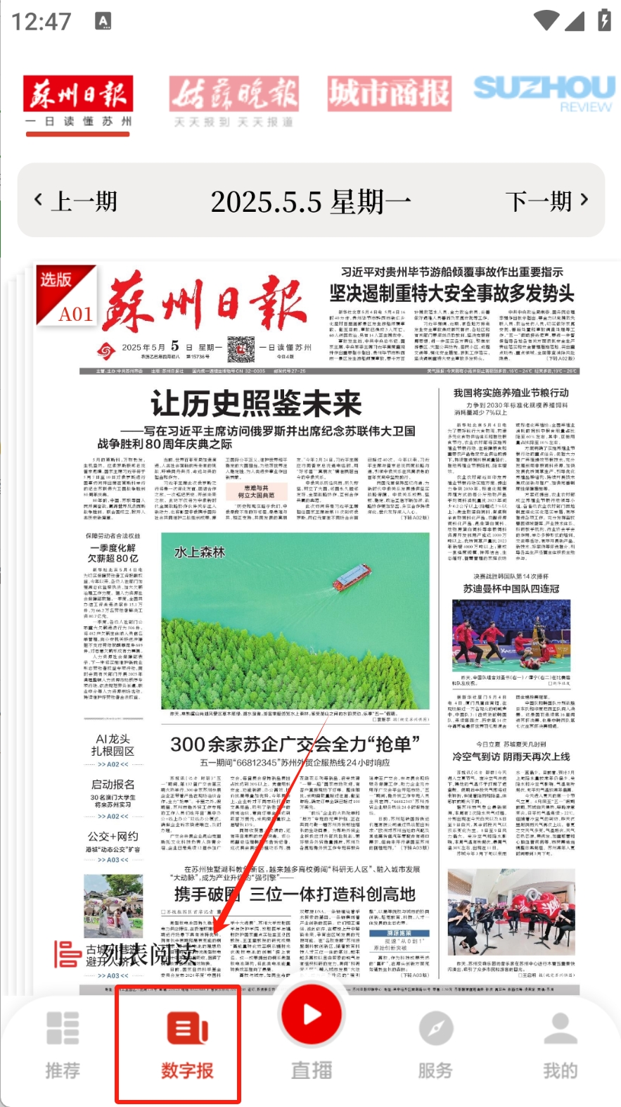 2、阅读数字报纸:点击“数字报”图标,阅读电子版报纸。