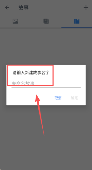 2、故事页输入新故事名,点确定保存,方便后续按主题整理你的大片。