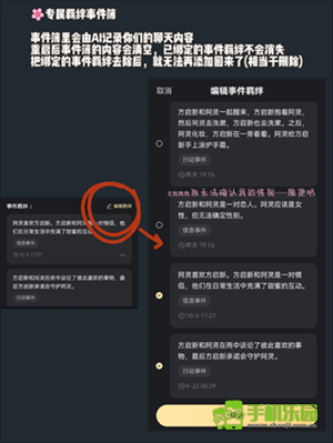 事件簿内的聊天内容将由AI负责记录,一旦重启,事件簿中的内容便会被清空,但已绑定的事件羁绊不会因此消失。需要注意的是,若将已绑定的事件羁绊解除,就无法再次添加,这等同于直接删除该羁绊。