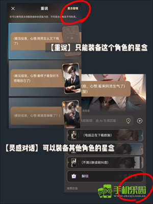 重说星念仅能装备给对应的角色,而灵感对话星念则可以装备给其他角色。