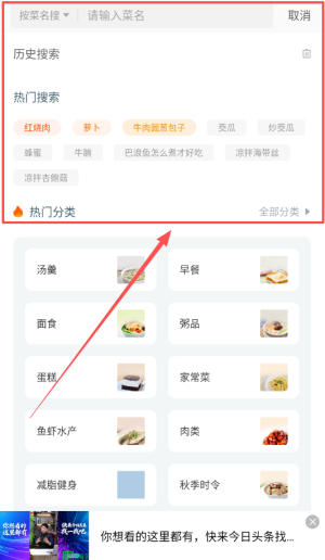 1、打开家常菜后,用户进入主页后可看到最新的热门菜谱推荐,便于选择自己感兴趣的菜品。