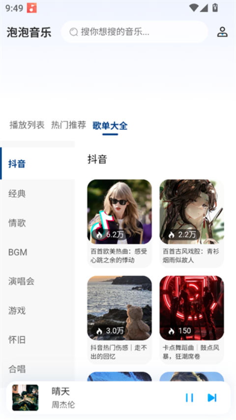 新歌实时更新上架,经典老歌完整收录,无论是当下热门还是怀旧金曲,在泡泡都能轻松找到,助你告别歌荒烦恼。