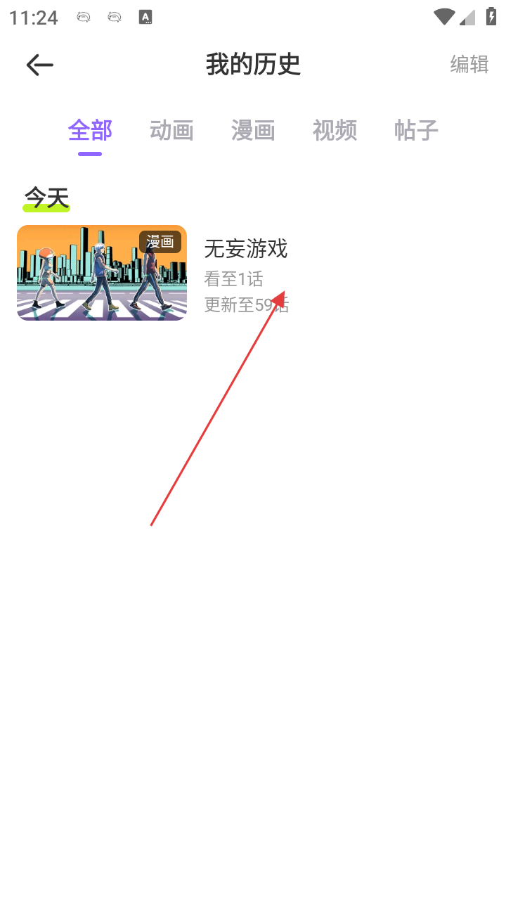 3、在【我的历史】界面,可查看阅读过的漫画记录,如《无妄游戏》,方便继续阅读。