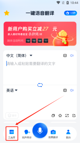 打开软件点击底部的工具库选择需要翻译的方式