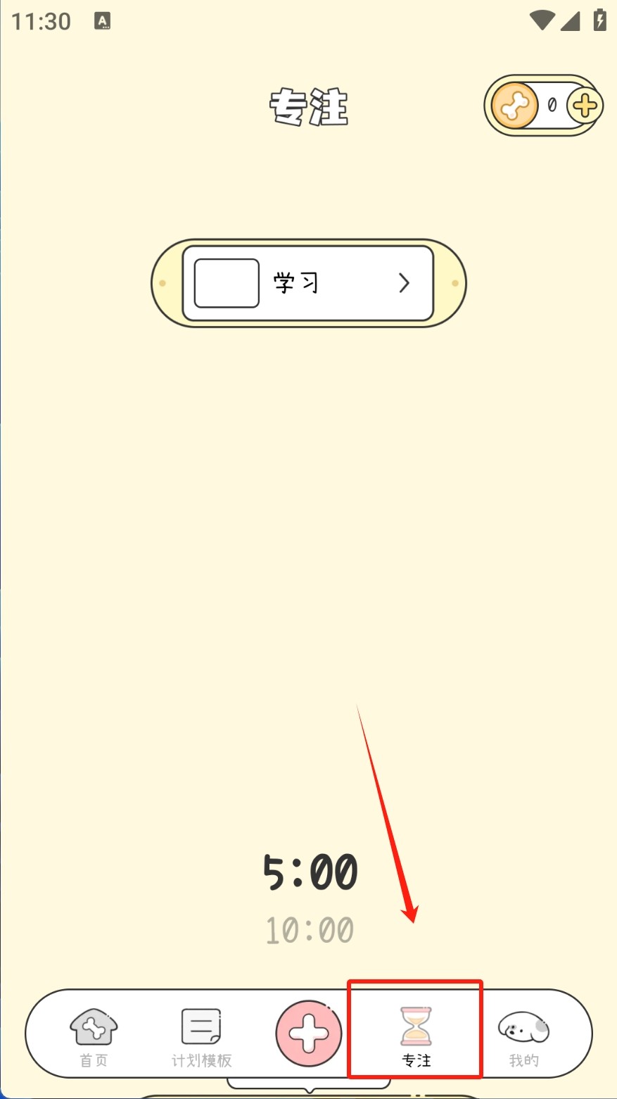 3、设置专注时间:点击“专注”选项,设置专注时间和任务。