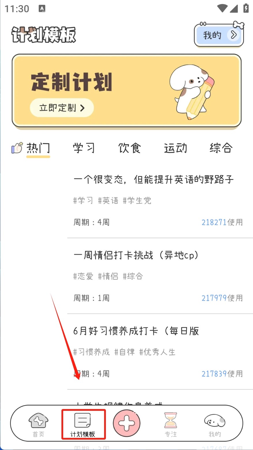 2、选择计划模板:点击“计划模板”选项,选择适合的计划模板。