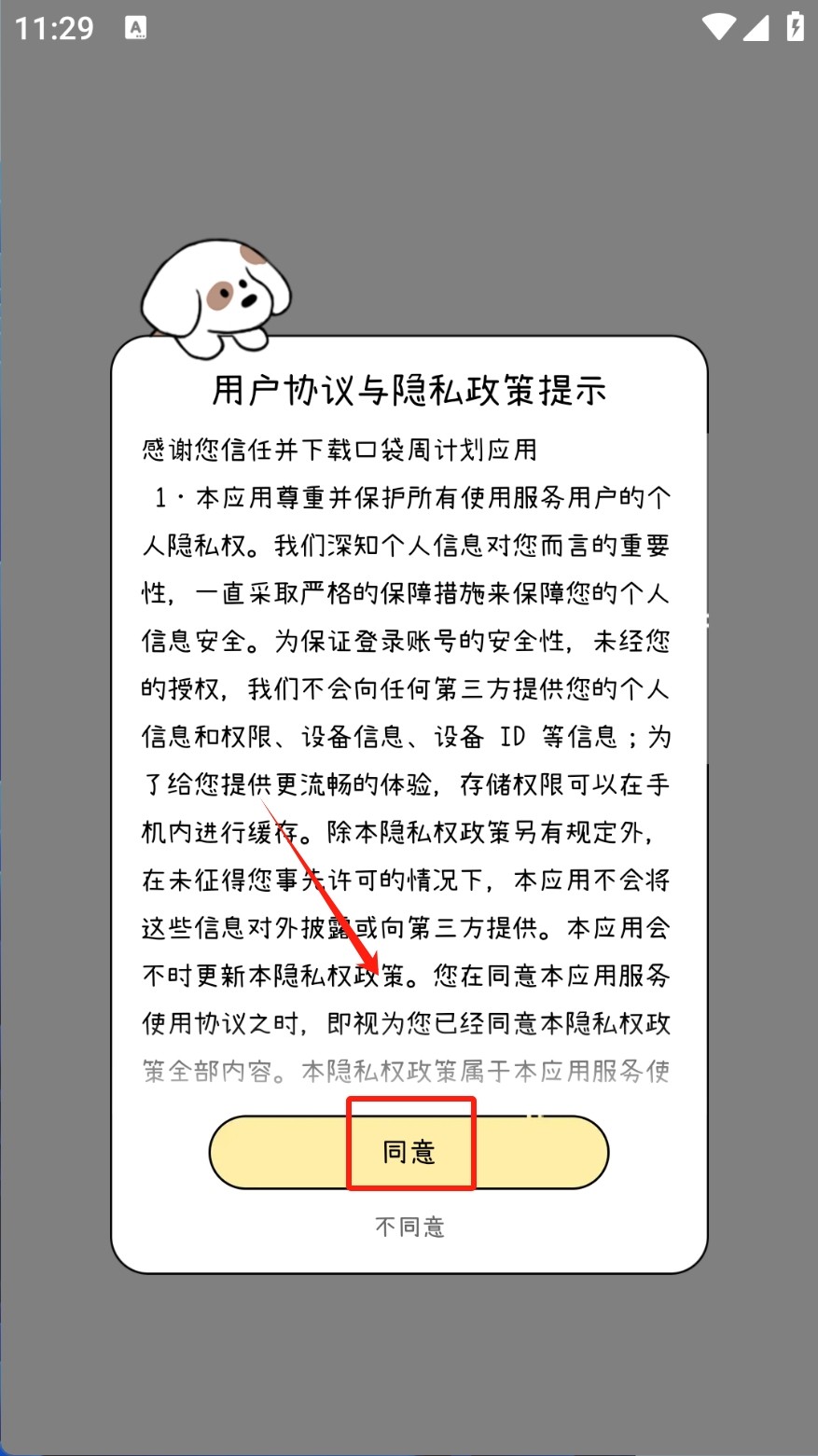1、同意协议:点击“同意”按钮,接受用户协议和隐私政策。