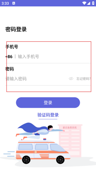 2、进入登录界面输入手机号和密码。