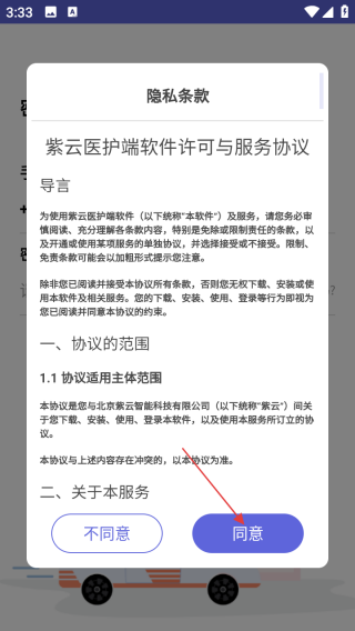 1、打开应用查看协议点击同意。