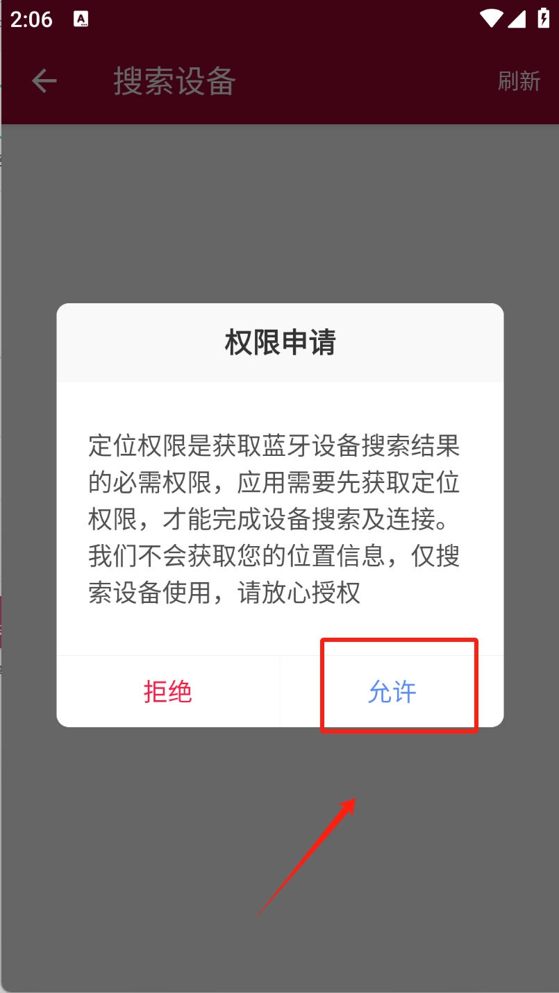 2、在权限申请弹窗中,点击“允许”以授权定位权限。