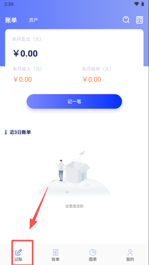 1、点击“记一笔”输入金额分类,完成首笔支出或收入记录。