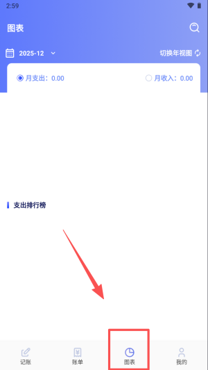 3、切换到图表页,利用年视图查看支出排行榜分析消费结构。