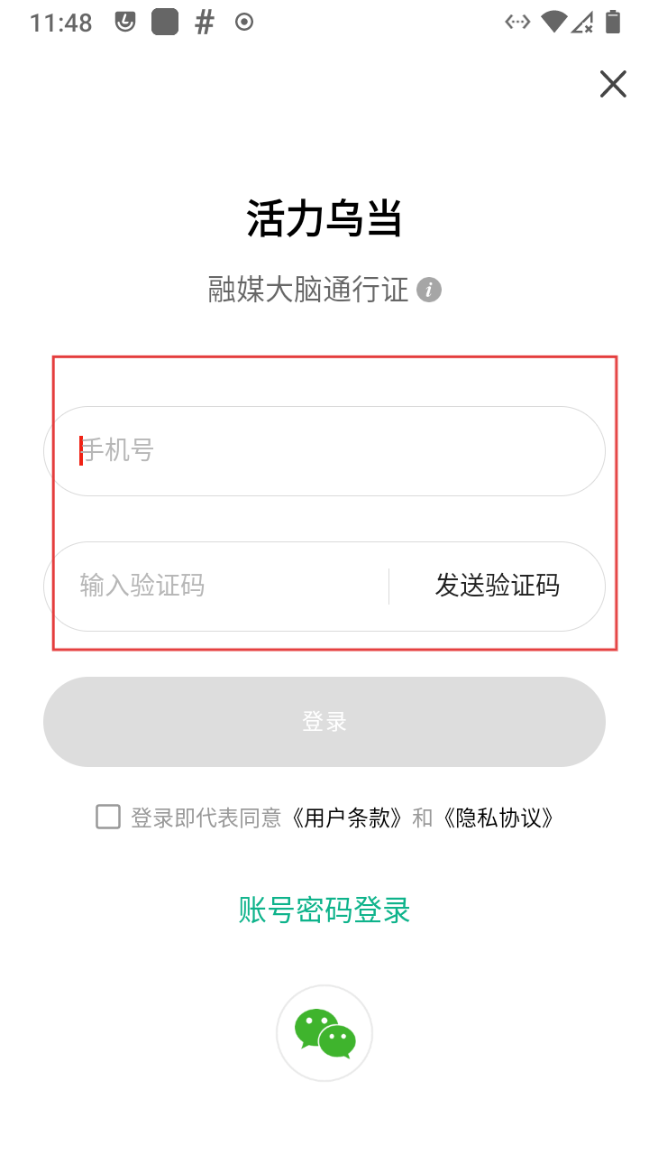 3、在登录页填【手机号】,点击【发送验证码】并输入验证码。